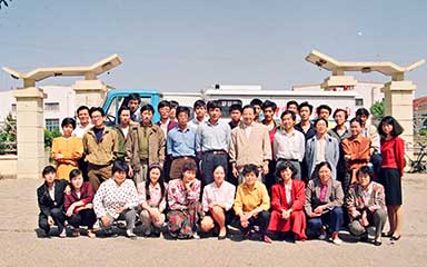 威海特種電源設(shè)備廠成立,并從電冰柜廠分離出來(lái),以獨(dú)立法人資格對(duì)外自主經(jīng)營(yíng),自負(fù)盈虧,租借廠房500平方米,圖為創(chuàng)業(yè)初期的28名員工。