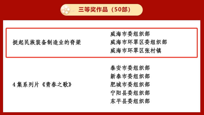 近日,山東省委組織部組織開展了2023年度全省黨員教育電視片(黨課)觀摩交流活動。各地各單位精心組織創(chuàng)作,積極遴選推薦,推出了一大批黨員教育精品力作。經(jīng)過初篩初評、互評互鑒和專家評審,最終確定100部優(yōu)秀電視片、100部優(yōu)秀黨課、40部“我和我的支部”作品和最佳策劃、最佳編…