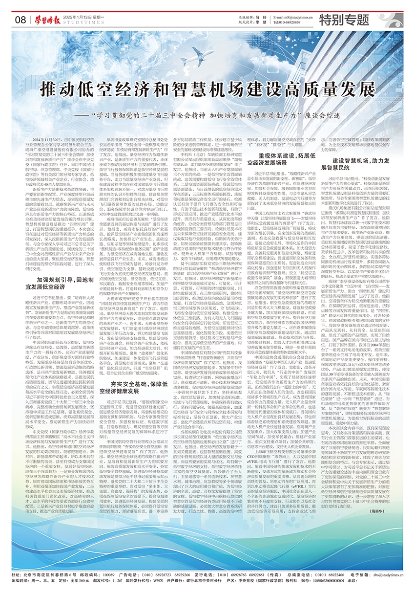 2024年11月30日,由中國民航局空管行業(yè)管理辦公室與學(xué)習(xí)時報社聯(lián)合主辦、威海廣泰空港設(shè)備股份有限公司協(xié)辦的“學(xué)習(xí)貫徹黨的二十屆三中全會精神 加快培育和發(fā)展新質(zhì)生產(chǎn)力”座談會在中央黨校(國家行政學(xué)院)召開,來自中國民用航空局、應(yīng)急管理部、中央黨校(國家行政學(xué)院)等有關(guān)…
