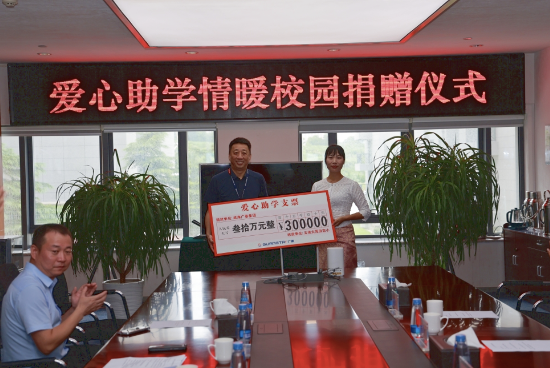 一份愛心捐助就是一份社會擔當,大愛善行、廣泰先行。威海廣泰三十年來一直堅持“同客戶以雙贏,與員工共發(fā)展,給股東以回報,對社會以貢獻”的企業(yè)宗旨,在抗疫、搶險、救災(zāi)、醫(yī)療救助、重大國事保障、愛心助學(xué)等方面持續(xù)貢獻廣泰力量。鄉(xiāng)村振興、教育振興是社會發(fā)展新階段的重要議題,李文軒董事長表示,教育振興是一個長期性工程,廣泰將繼續(xù)在物質(zhì)基礎(chǔ)、精神關(guān)愛等方面開展助學(xué)活動,幫助更多的孩子營造好的教育環(huán)境。十年樹木、百年育人,為培育好祖國新一代生力軍做出努力,就是為國家的未來發(fā)展作出貢獻。